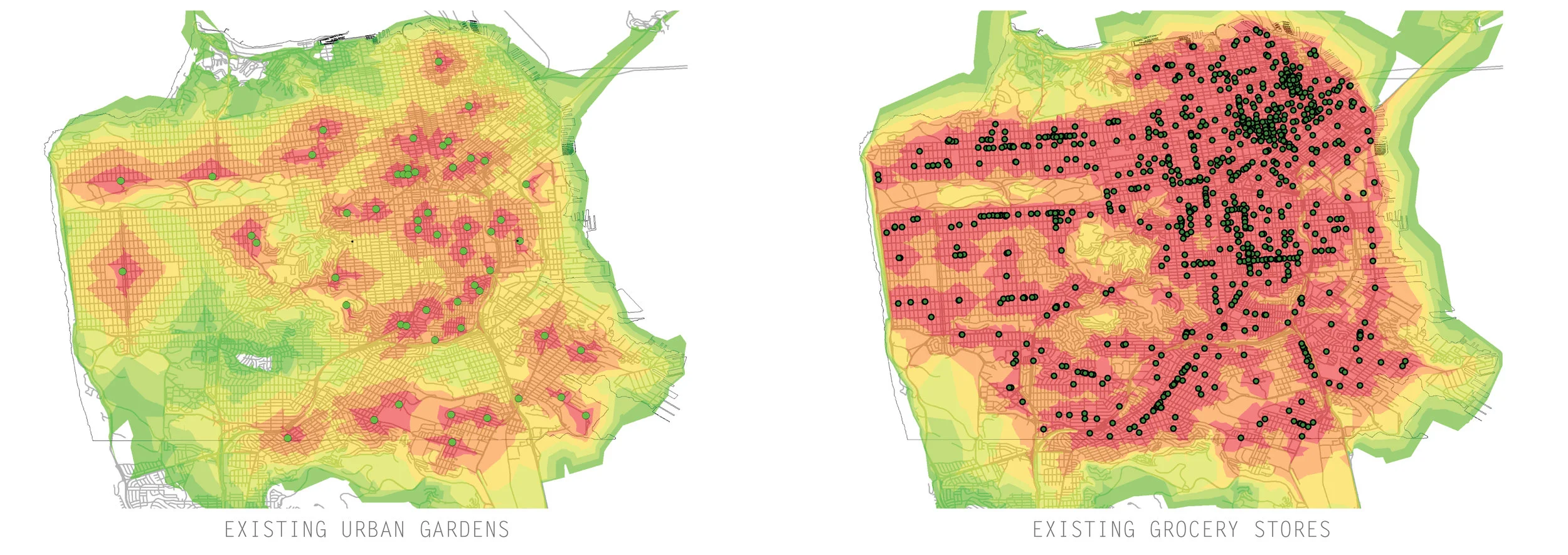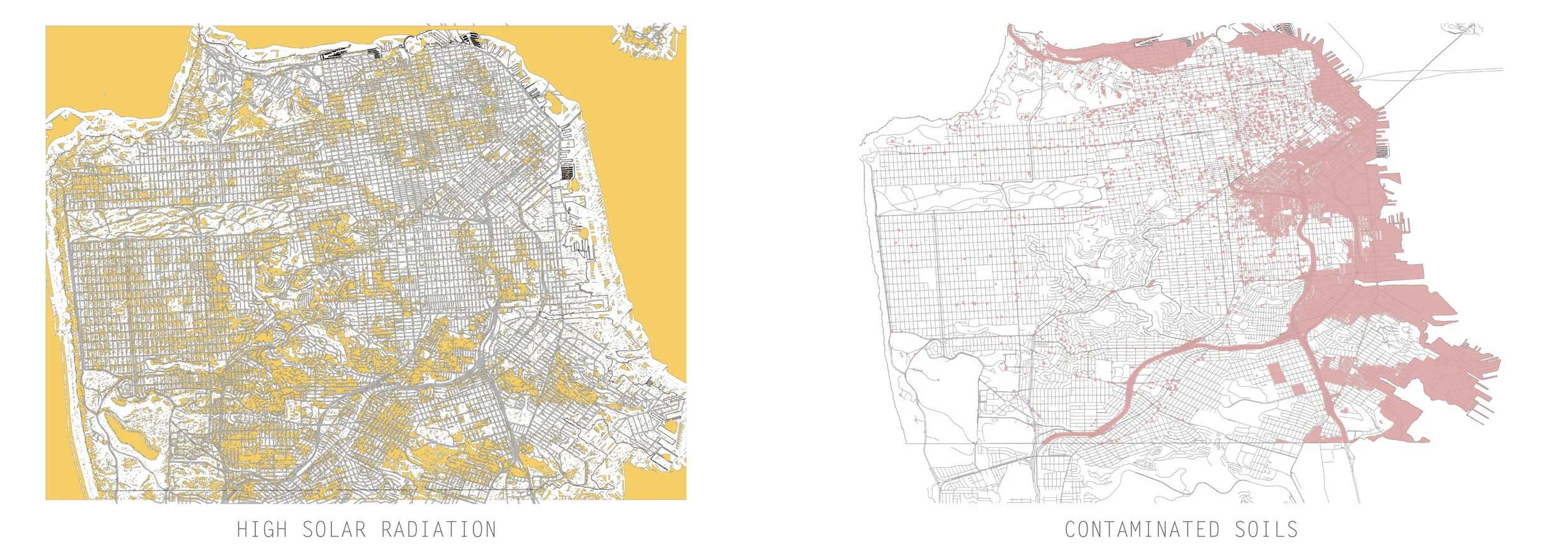 Community farms must be situated to balance optimal growing conditions and accessibility for communities in need. This project explores how demographic and geographic data can be used to identify viable sites for new urban farms and community gardens in San Francisco. More broadly, this project explores how data can be used as a supplemental tool to inform design decisions for architectural, environmental, and user-centered design problems.